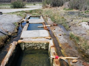 Baker hot springs provides three tubs for soaking. Each is just big enough to accommodate two people. Two sources of water fill the tubs. One ditch carries the hot water while another carries the cold water. You have complete control over the temperature. Baker is very popular for the nearby town folks, so skinny dippers beware.