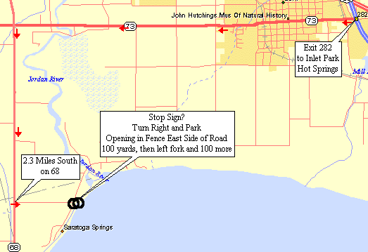 Directions: Take exit 282 from I-15 and head west on Highway 73. Just west of the Jordan River is the junction with Highway 68. Go south on Highway 68 for 2.3 miles. Turn east and go to the stop sign. Turn right and park.